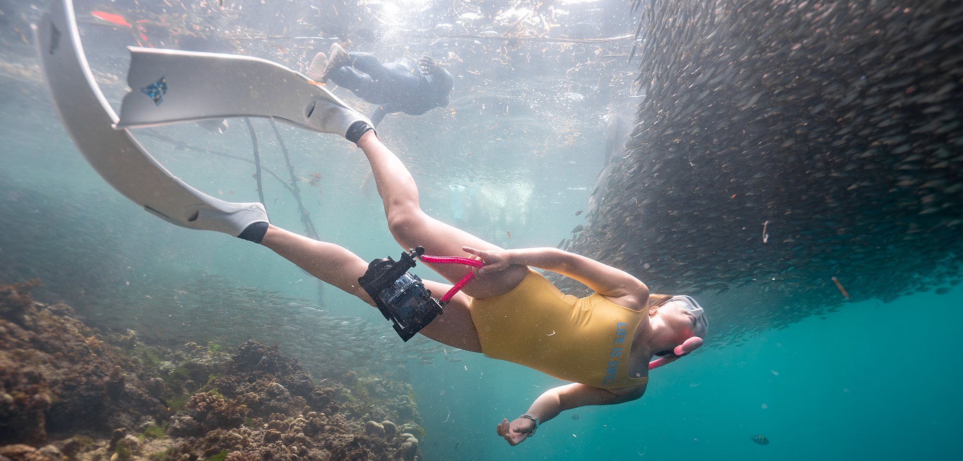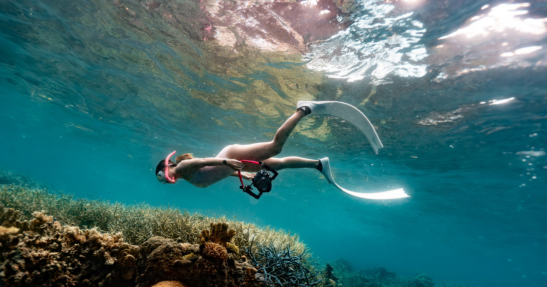 프리다이빙은 무호흡으로 물 에서 안정적이고 편안하게 유영하며 자연을 느끼면서 활동합니다.