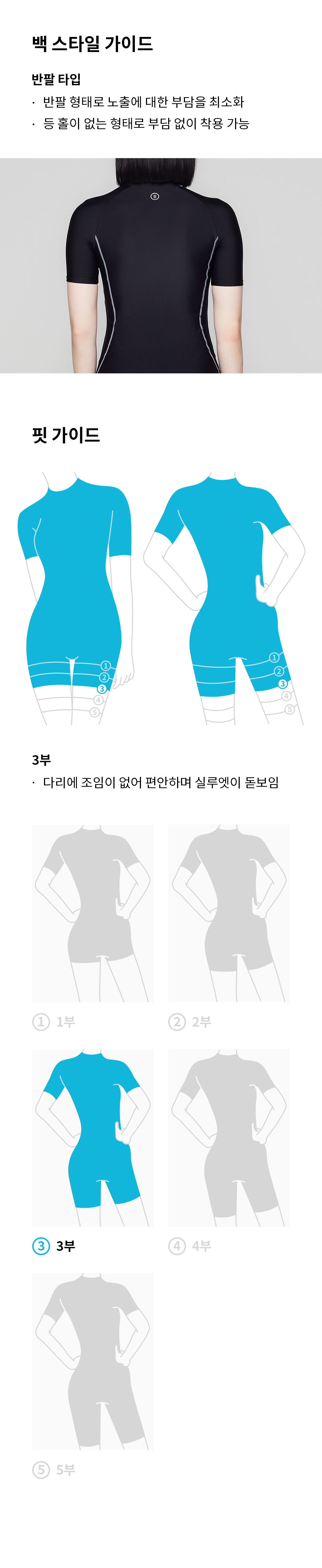 우먼 에센셜 반팔 3부 반신 수영복 블랙 085