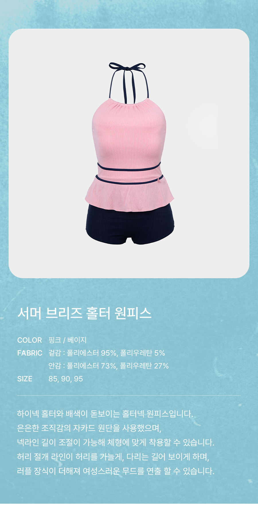 제품을 입고 바닷가나 수영장을 다녀오신 경우, 물 속의 화학성분 및 염분으로 인해 변색이 발생합니다. 땀으로 인한 부분 탈색이 발생할 수 있으니 가능한 한 빨리 수돗물로 세탁하시고 가볍게 두드려서 수분을 뺀 뒤, 직사광선을 피해 그늘에서 건조해주세요.