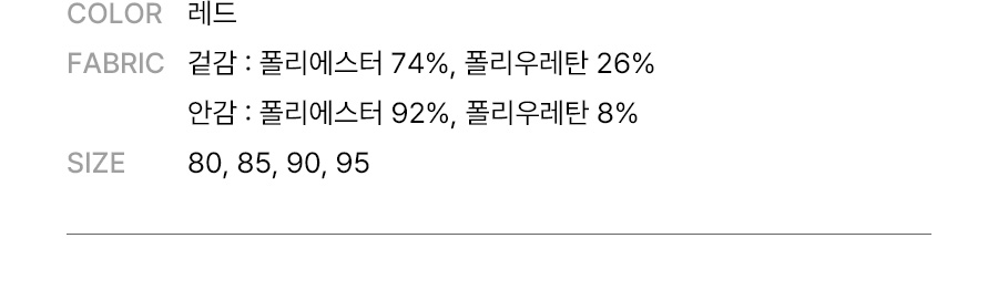 겉감: 폴리에스터 74%, 폴리우레탄 26% / 안감: 폴리에스터 92%, 폴리우레탄 8%