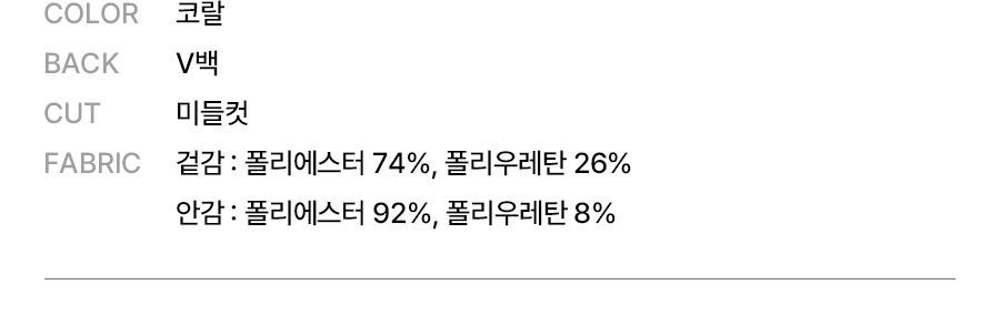 겉감: 폴리에스터 74%, 폴리우레탄 26% / 안감: 폴리에스터 92%, 폴리우레탄 8%