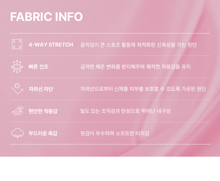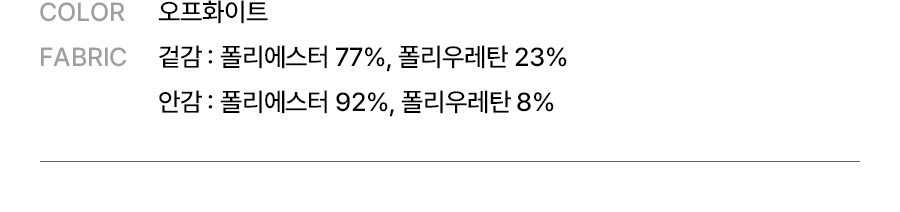 겉감: 폴리에스터 77%, 폴리우레탄 23% / 안감: 폴리에스터 92%, 폴리우레탄 8%