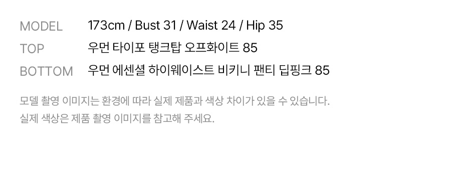 • 신축성 있는 제품 (탱크탑, 브라탑, 브라패드, 레깅스, 비키니, 비키니팬츠, 이너웨어) 은 시착 시 상품의 가치가 훼손되어 반품이 불가합니다.