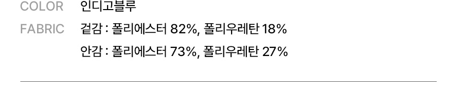 겉감: 폴리에스터 82%, 폴리우레탄 18% / 안감: 폴리에스터 73%, 폴리우레탄 27%
