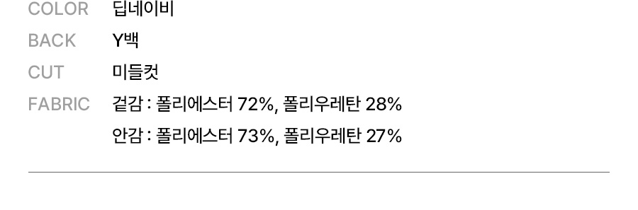 겉감: 폴리에스터 72%, 폴리우레탄 28% / 안감: 폴리에스터 73%, 폴리우레탄 27%