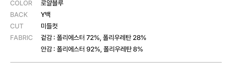 겉감: 폴리에스터 72%, 폴리우레탄 28% / 안감: 폴리에스터 92%, 폴리우레탄 8%