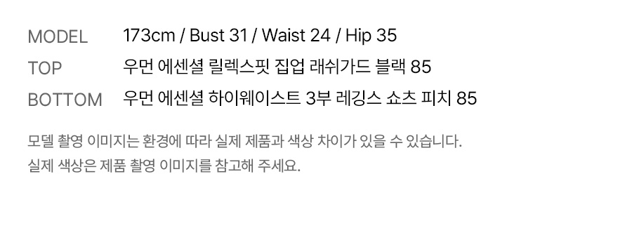 • 신축성 있는 제품 (탱크탑, 브라탑, 브라패드, 레깅스, 비키니, 비키니팬츠, 이너웨어) 은 시착 시 상품의 가치가 훼손되어 반품이 불가합니다.