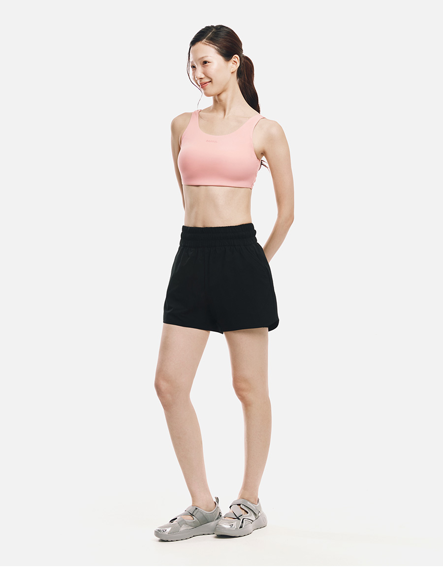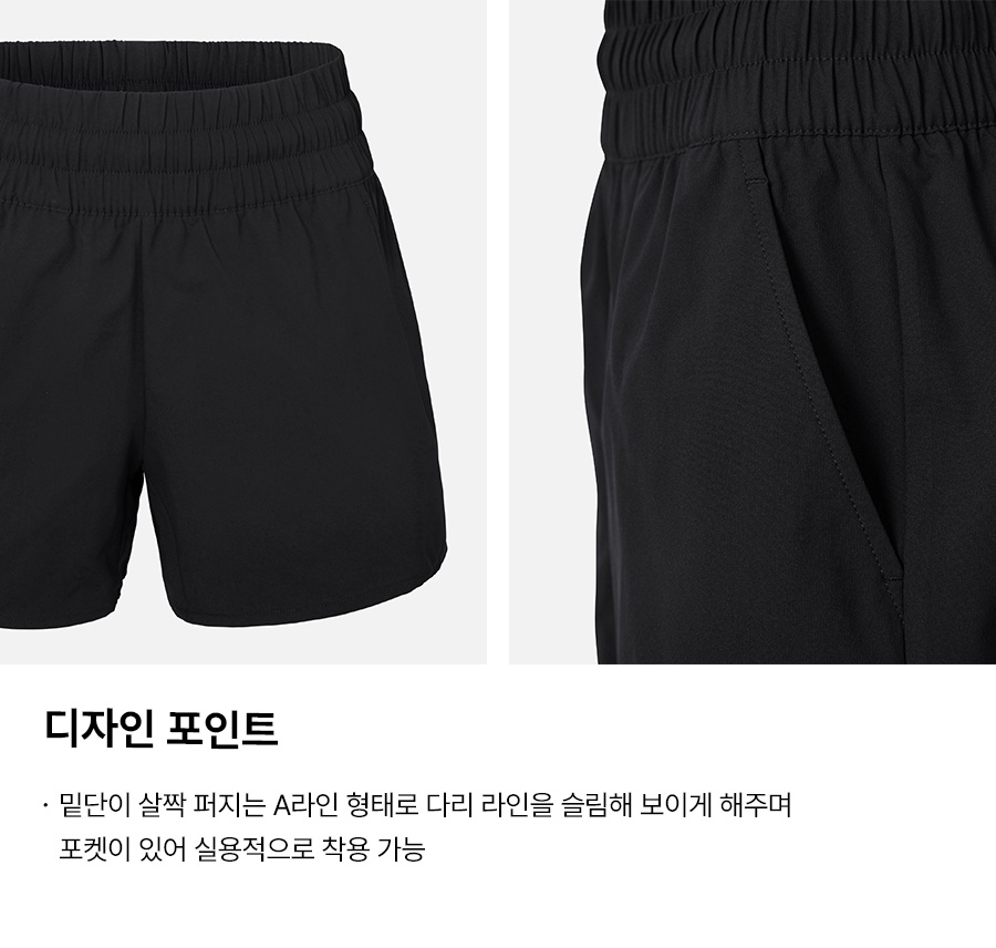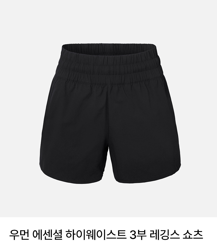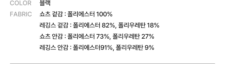 쇼츠 겉감: 폴리에스터 100% / 레깅스 겉감: 폴리에스터 82% 폴리우레탄 18% / 쇼츠 안감: 폴리에스터 73%, 폴리우레탄 27% / 레깅스 안감: 폴리에스터91%, 폴리우레탄 9%