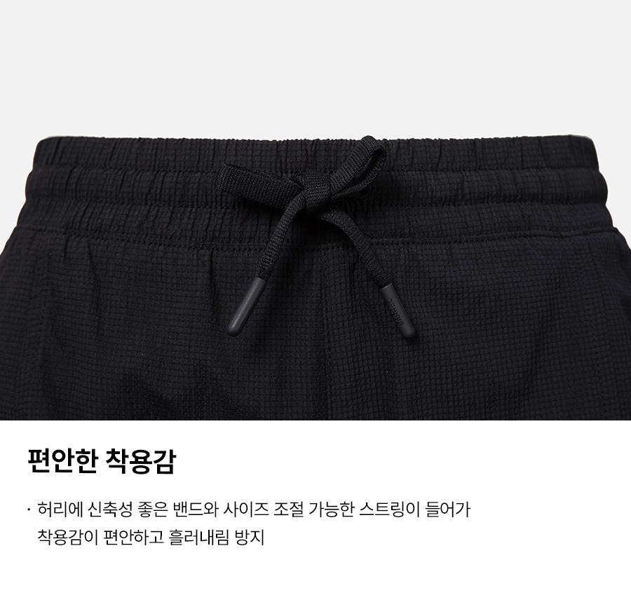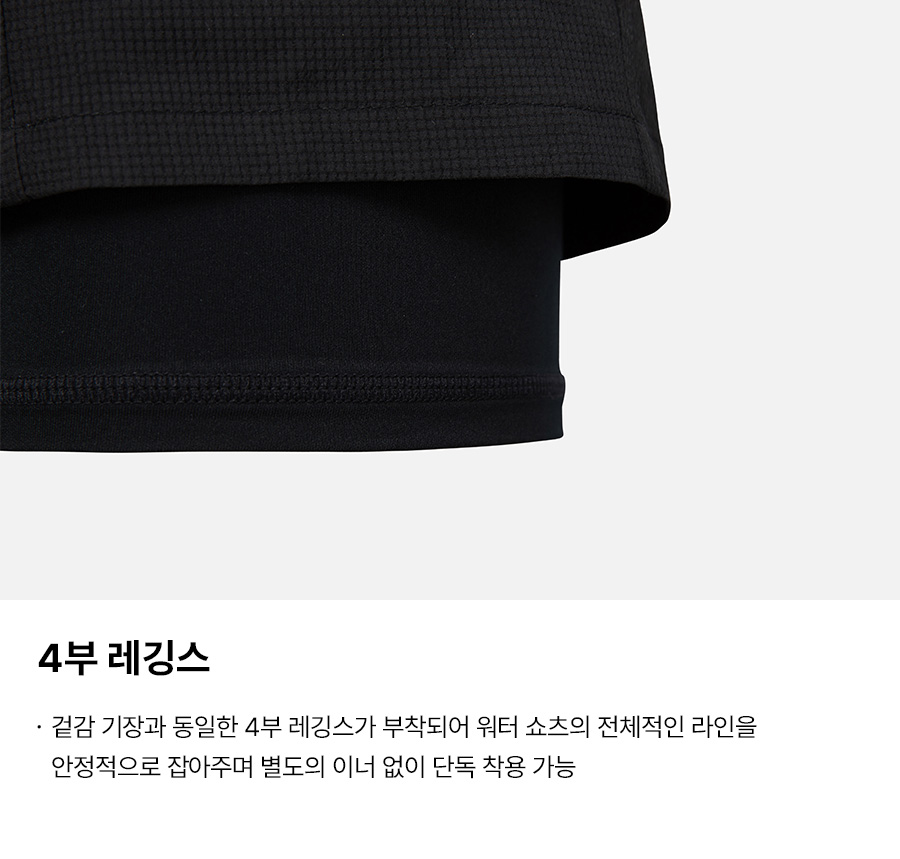 쇼츠 겉감: 폴리에스터 100% / 레깅스 겉감 : 폴리에스터 82%, 폴리우레탄 18% / 안감 : 폴리에스터 73%, 폴리우레탄 27%