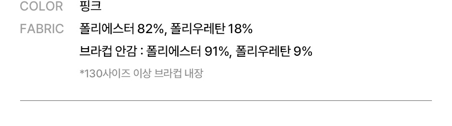 폴리에스터 82%, 폴리우레탄 18% / 브라컵 안감 : 폴리에스터 91% , 폴리우레탄 9%