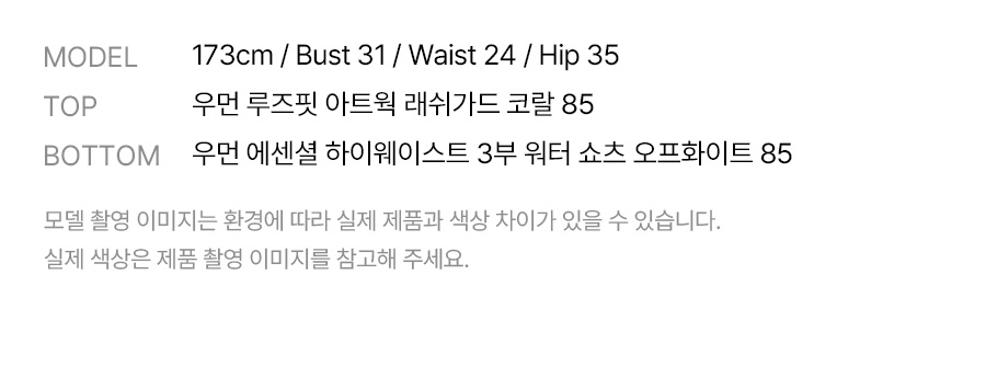 밝은 색상의 래쉬가드는 흙탕물에 오염이 되었을 경우 변색이 발생할 수 있으므로 주의 바랍니다.