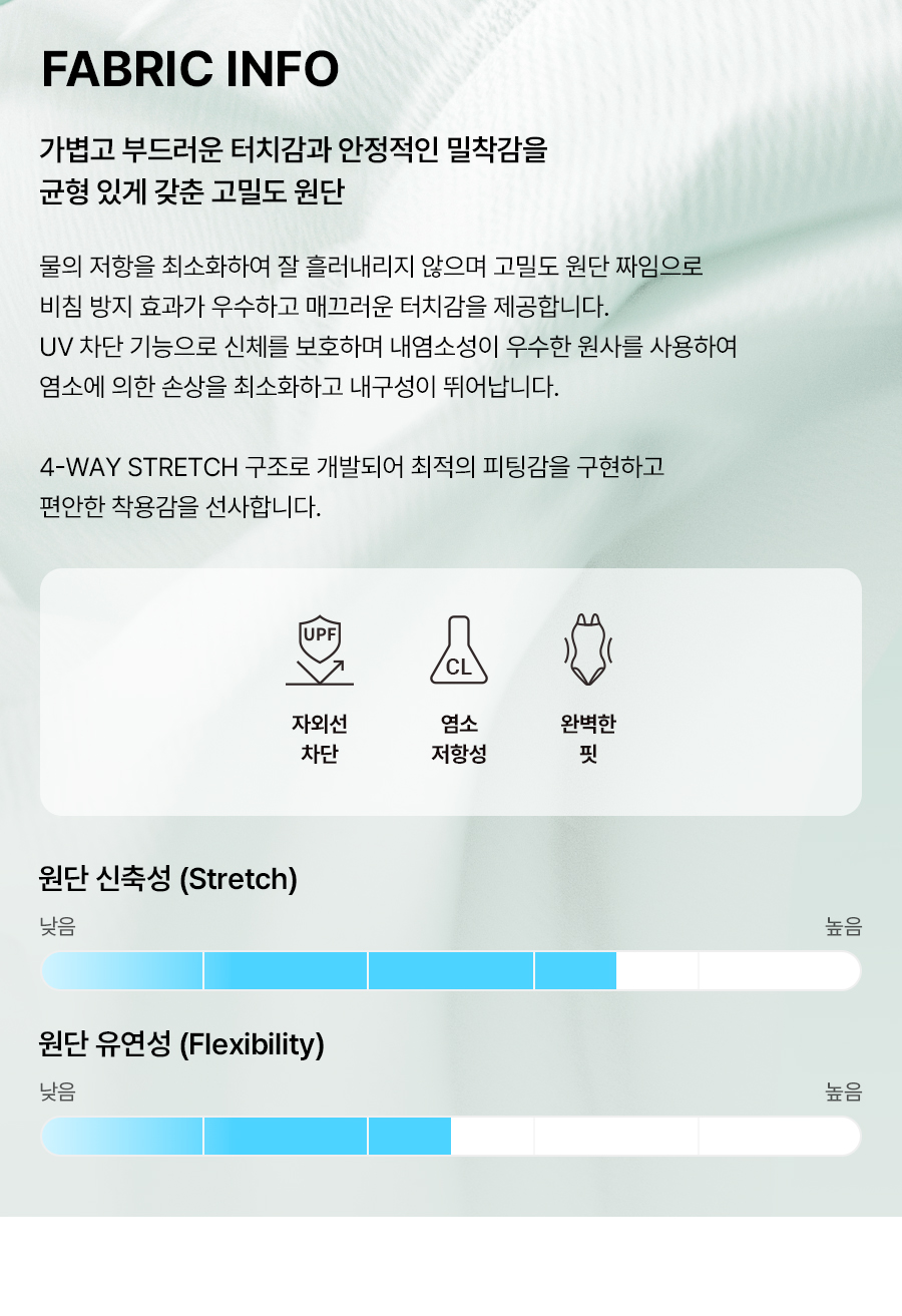 겉감: 폴리에스터 80%, 폴리우레탄 20% / 안감: 폴리에스터 92%, 폴리우레탄 8%