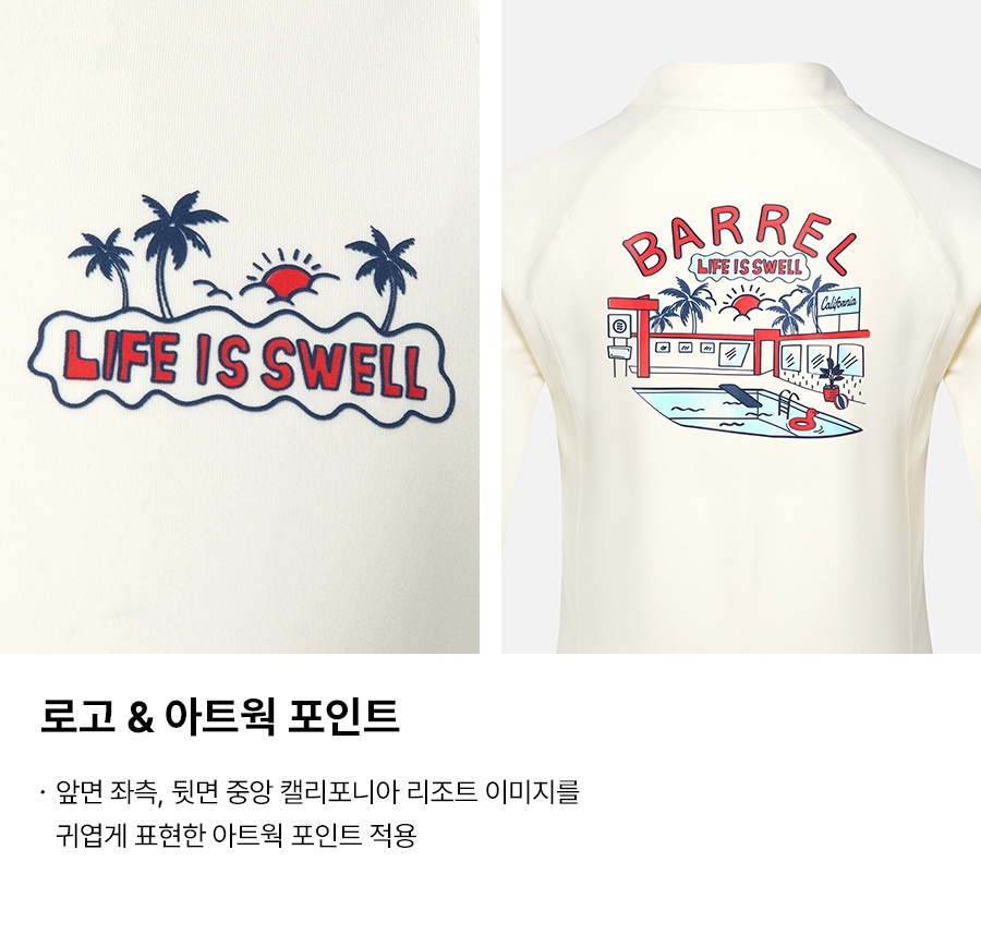 밝은 색상의 래쉬가드는 흙탕물에 오염이 되었을 경우 변색이 발생할 수 있으므로 주의 바랍니다.
