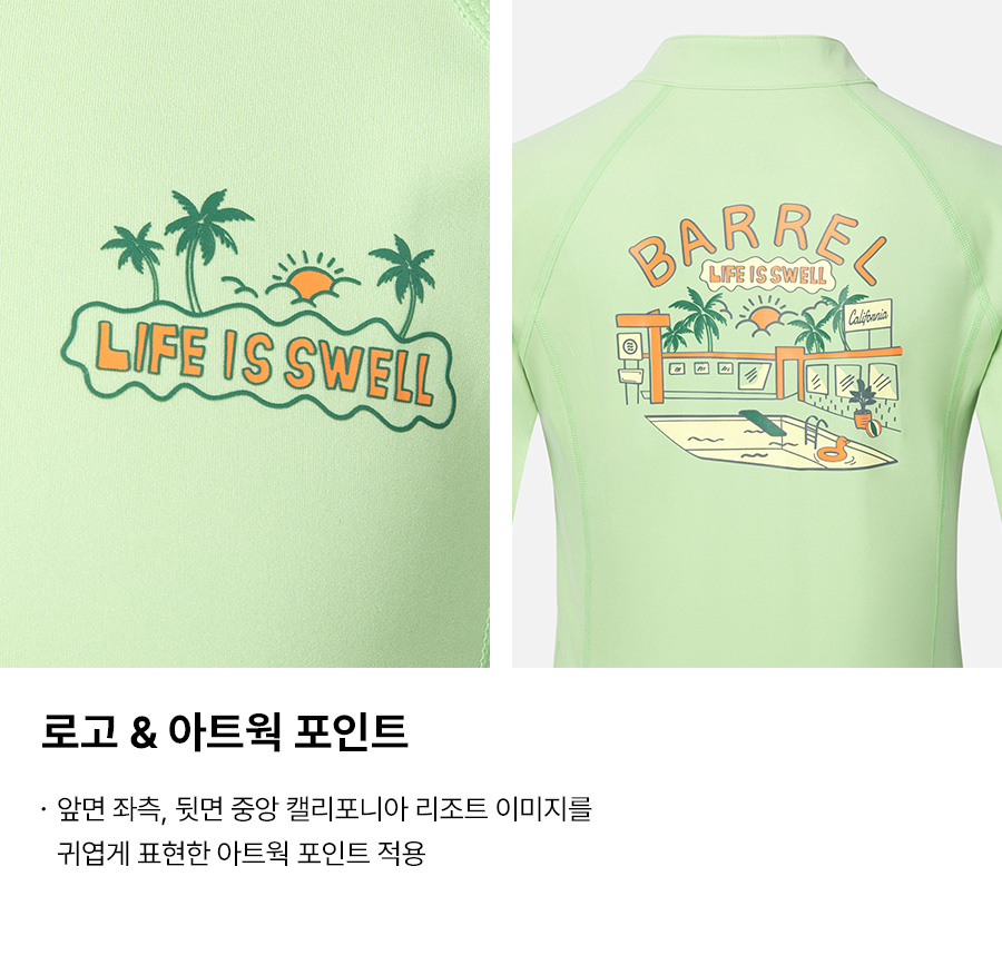 밝은 색상의 래쉬가드는 흙탕물에 오염이 되었을 경우 변색이 발생할 수 있으므로 주의 바랍니다.