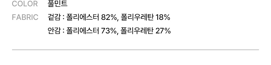 겉감: 폴리에스터 82%, 폴리우레탄 18% / 안감: 폴리에스터 73%, 폴리우레탄 27%