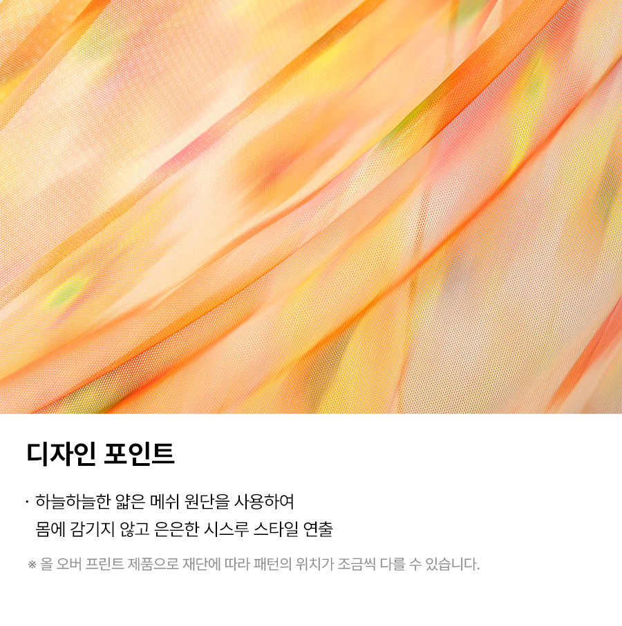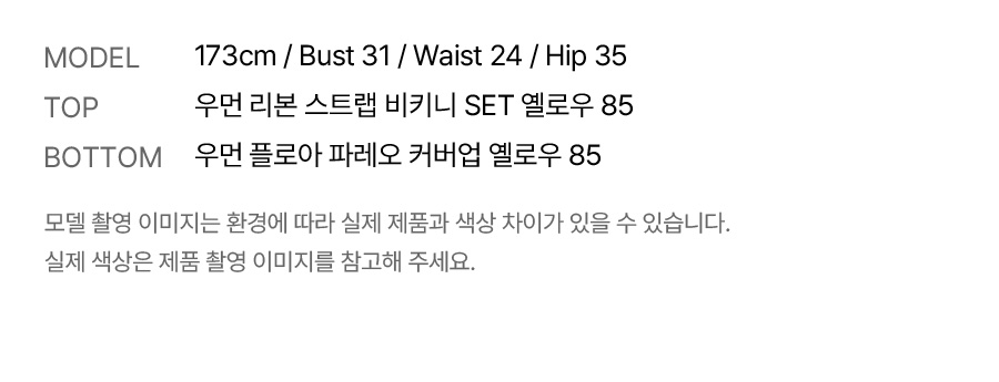 제품을 입고 바닷가나 수영장을 다녀오신 경우, 물 속의 화학성분 및 염분으로 인해 변색이 발생합니다. 땀으로 인한 부분 탈색이 발생할 수 있으니 가능한 한 빨리 수돗물로 세탁하시고 가볍게 두드려서 수분을 뺀 뒤, 직사광선을 피해 그늘에서 건조해주세요.