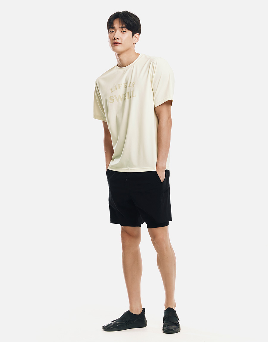 쇼츠 겉감: 폴리에스터 92%, 폴리우레탄 8%, 레깅스 겉감: 폴리에스터 82%, 폴리우레탄 18% / 쇼츠 안감: 폴리에스터 91%, 폴리우레탄 9%, 이너드로즈 안감: 폴리에스터 73%, 폴리우레탄 27%