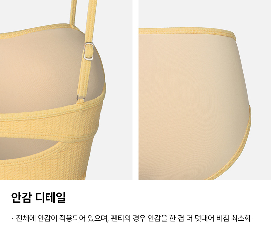 제품을 입고 바닷가나 수영장을 다녀오신 경우, 물 속의 화학성분 및 염분으로 인해 변색이 발생합니다. 땀으로 인한 부분 탈색이 발생할 수 있으니 가능한 한 빨리 수돗물로 세탁하시고 가볍게 두드려서 수분을 뺀 뒤, 직사광선을 피해 그늘에서 건조해주세요.