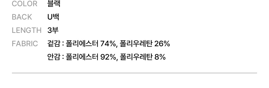 겉감: 폴리에스터 74%, 폴리우레탄 26% / 안감: 폴리에스터 92%, 폴리우레탄 8%