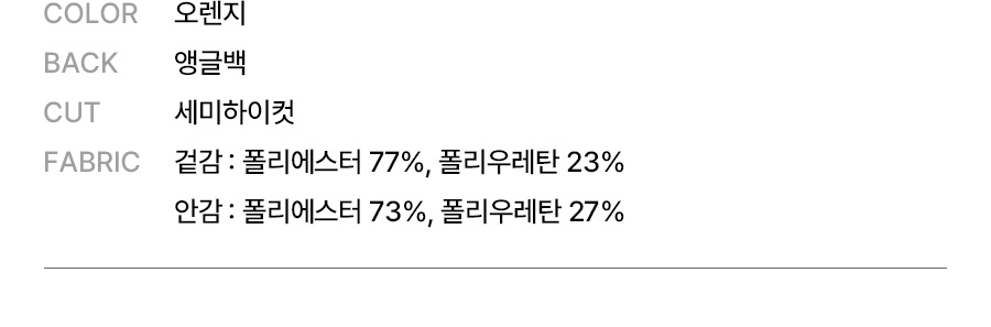겉감: 폴리에스터 77%, 폴리우레탄 23% / 안감: 폴리에스터 73%, 폴리우레탄 27%