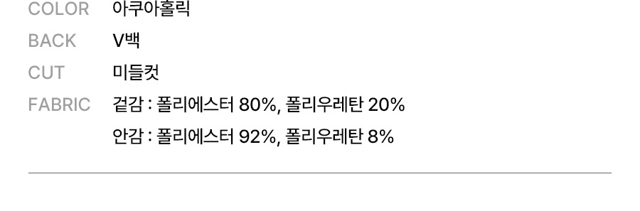 겉감: 폴리에스터 80%, 폴리우레탄 20% / 안감: 폴리에스터 92%, 폴리우레탄 8%