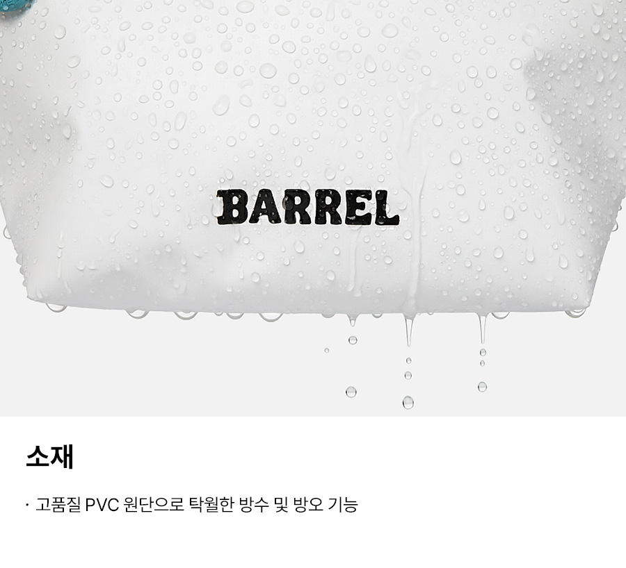 PVC원단은 질기고 내마모성이 우수한 원단입니다. 데미지에 강하고 물세탁 후나 물에 젖어도 강도는 변함없습니다. 단, 세탁시에는 손세탁해주세요. (세탁기 사용금지) 젖은 세탁물을 오래 넣어두시면 옷감이 변질 될 수 있습니다.