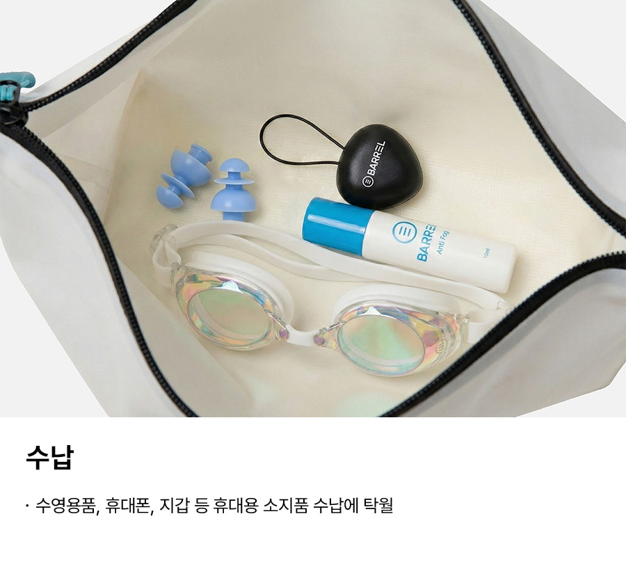 전자제품이나 귀중품을 가방 안에 넣고 물에 들어가거나 띄워놓고 사용하지 말아주세요. 물 속에서 제품을 사용할 경우 수압에 의한 침수 및 누수가 발생할 수 있습니다.