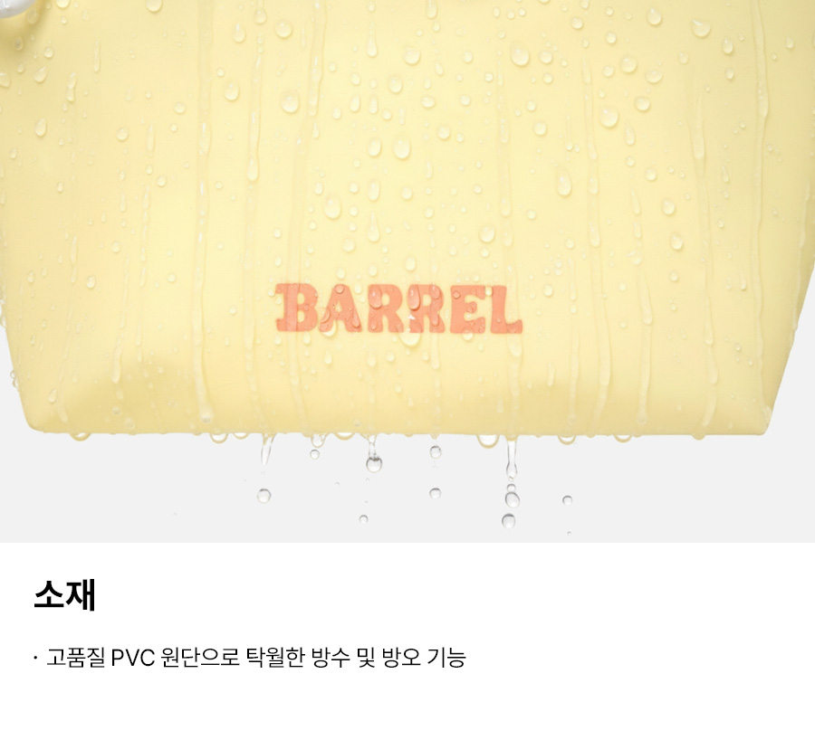 PVC원단은 질기고 내마모성이 우수한 원단입니다. 데미지에 강하고 물세탁 후나 물에 젖어도 강도는 변함없습니다. 단, 세탁시에는 손세탁해주세요. (세탁기 사용금지) 젖은 세탁물을 오래 넣어두시면 옷감이 변질 될 수 있습니다.