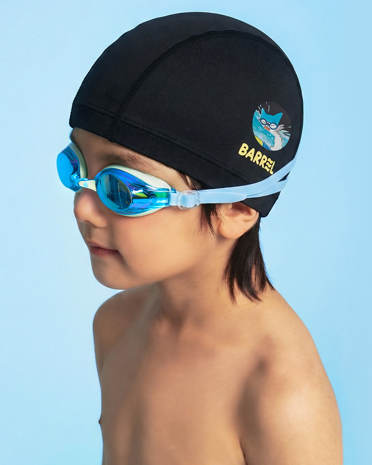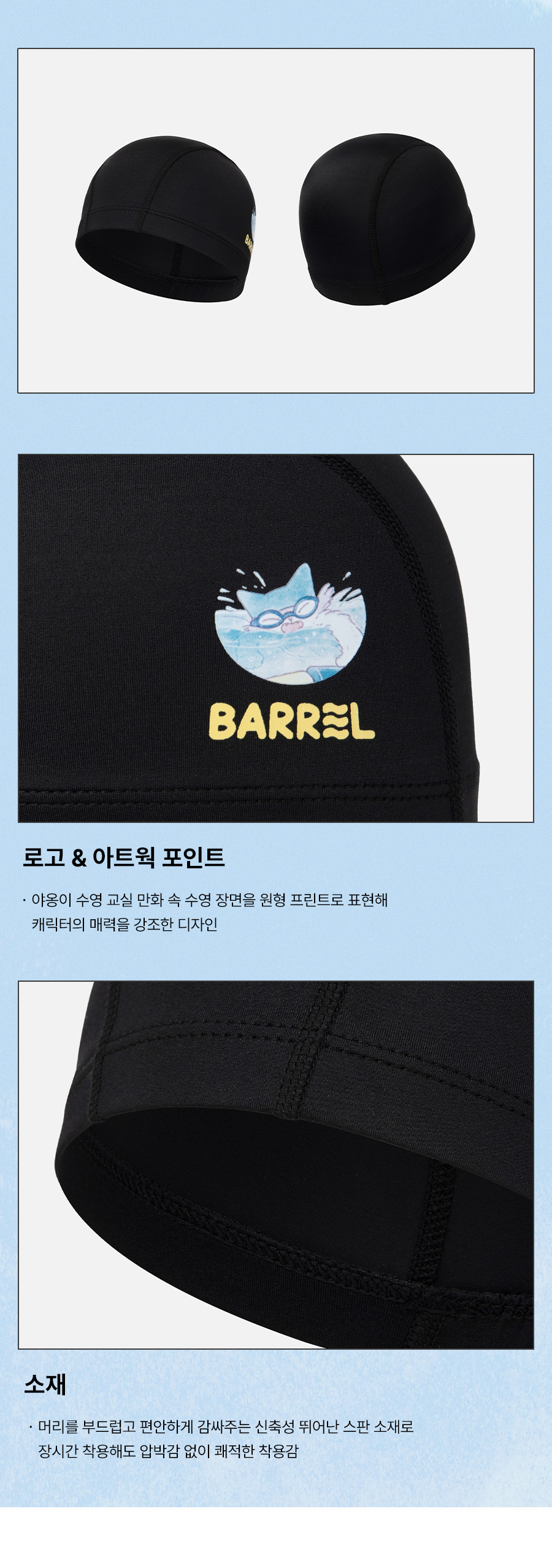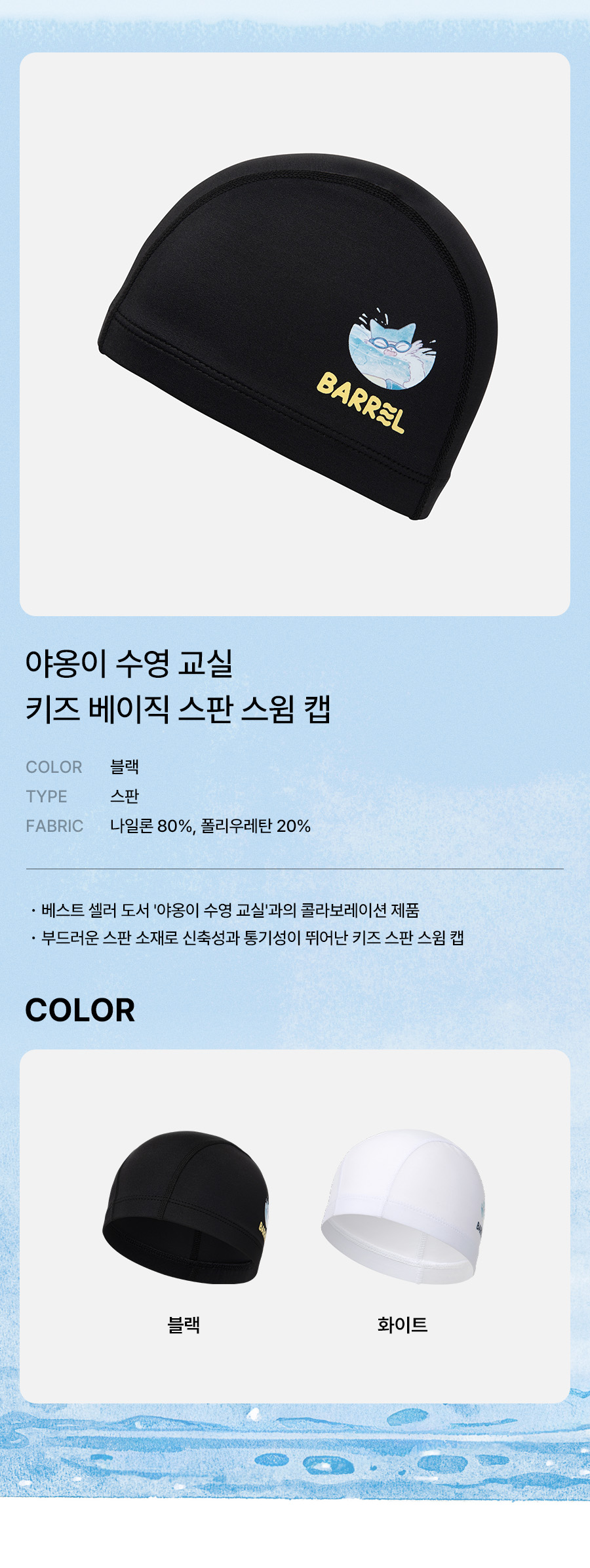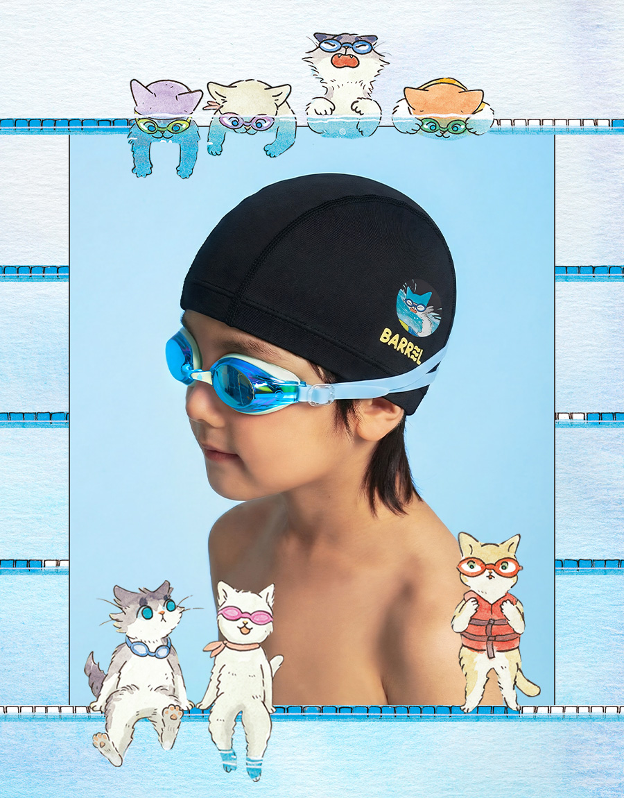 야옹이 수영 교실 키즈 베이직 스판 스윔 캡 블랙 (B6SKASC005BLK)