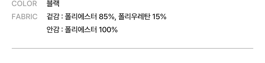 겉감: 폴리에스터 85%, 폴리우레탄 15% / 안감: 폴리에스터 100%