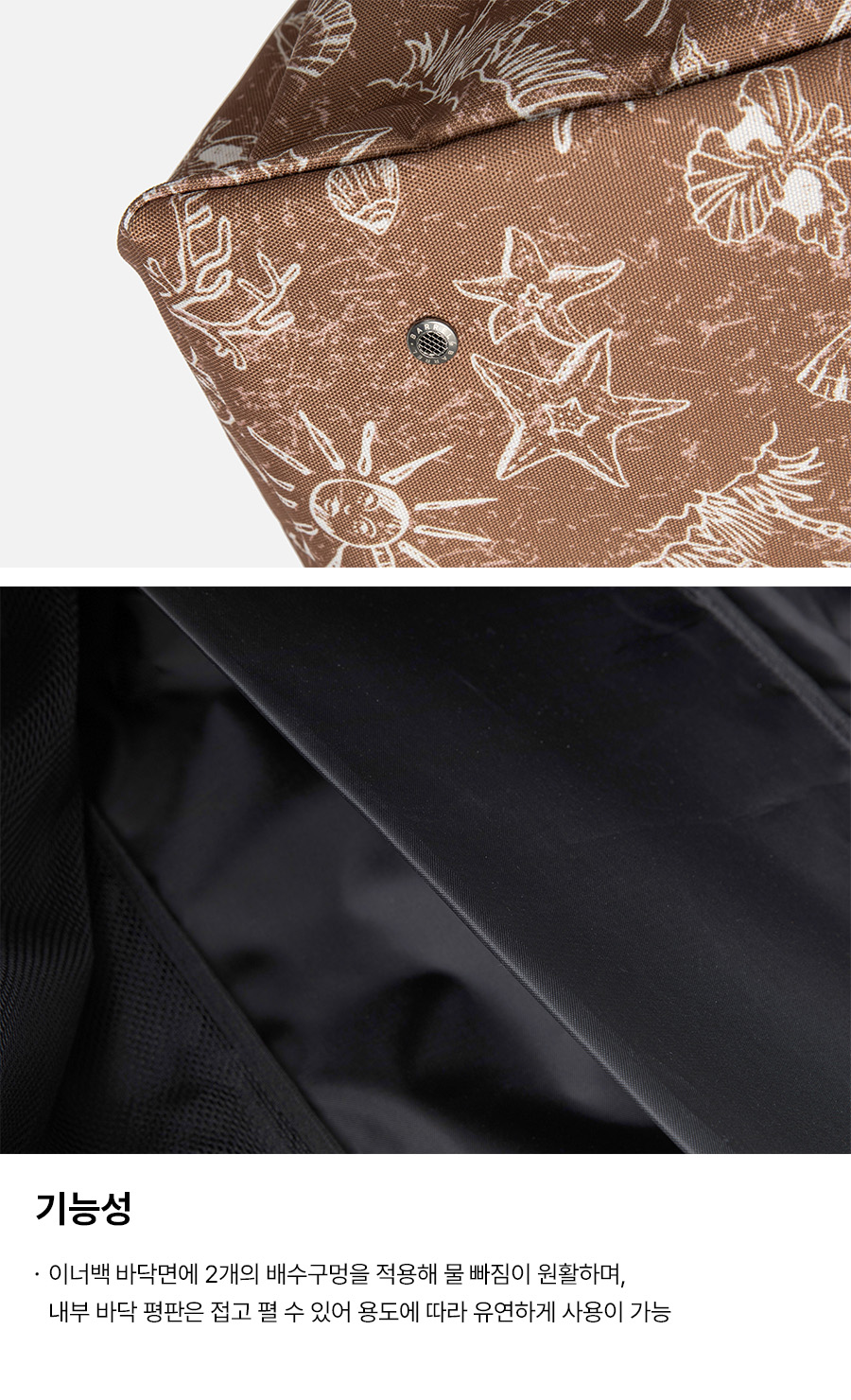 전자제품이나 귀중품을 가방 안에 넣고 물에 들어가거나 띄워놓고 사용하지 말아주세요. 물 속에서 제품을 사용할 경우 수압에 의한 침수 및 누수가 발생할 수 있습니다.