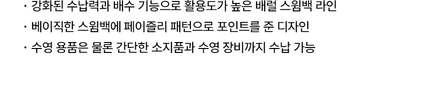 전자제품이나 귀중품을 가방 안에 넣고 물에 들어가거나 띄워놓고 사용하지 말아주세요. 물 속에서 제품을 사용할 경우 수압에 의한 침수 및 누수가 발생할 수 있습니다.