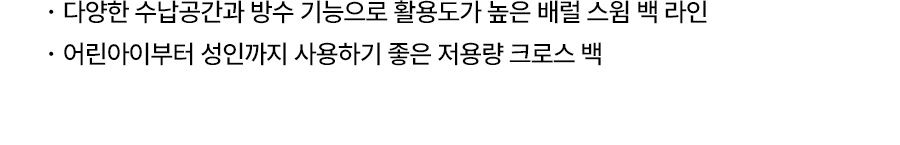 전자제품이나 귀중품을 가방 안에 넣고 물에 들어가거나 띄워놓고 사용하지 말아주세요. 물 속에서 제품을 사용할 경우 수압에 의한 침수 및 누수가 발생할 수 있습니다.