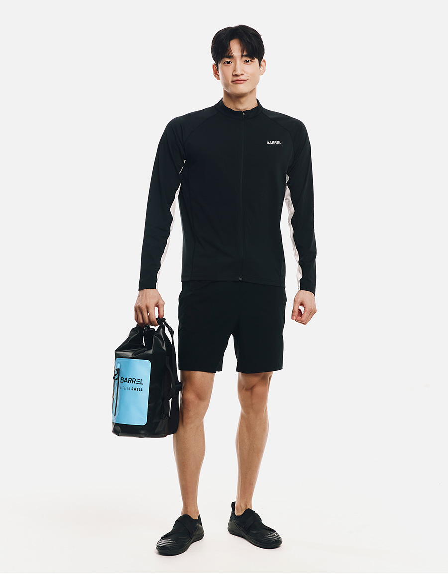 사용 후 즉시 20~30도 사이의 미지근한 물에 소금기가 가실 정도로 씻어주는 것이 좋습니다. 뜨거운 물에 세척하거나 찬물에 오래 방치할 경우 원단 유연성에 변화가 올 수 있습니다.