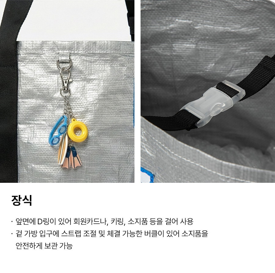 토트백: 폴리에틸렌 100% / 메쉬가방: 폴리에스터 100%
