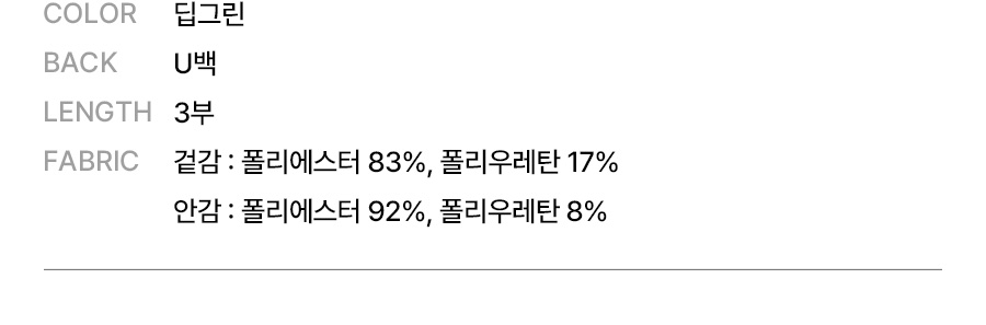 겉감: 폴리에스터 83%, 폴리우레탄 17% / 안감: 폴리에스터 92%, 폴리우레탄 8%