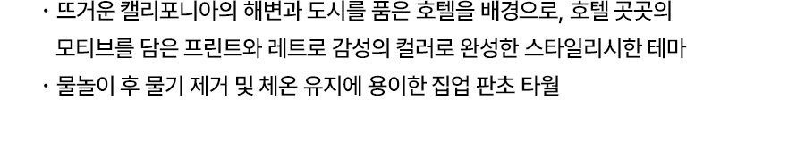 미끄럼틀과 같은 물놀이 기구의 경우, 마찰에 의해 옷감이 상하거나 보풀이 생길 수 있으니 주의해주시기 바랍니다.