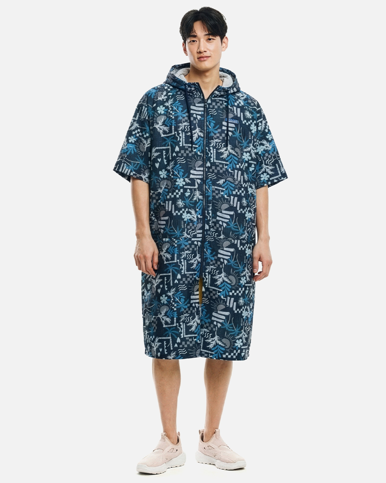 제품을 입고 바닷가나 수영장을 다녀오신 경우, 물 속의 화학성분 및 염분으로 인해 변색이 발생합니다. 땀으로 인한 부분 탈색이 발생할 수 있으니 가능한 한 빨리 수돗물로 세탁하시고 가볍게 두드려서 수분을 뺀 뒤, 직사광선을 피해 그늘에서 건조해주세요.
