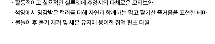 미끄럼틀과 같은 물놀이 기구의 경우, 마찰에 의해 옷감이 상하거나 보풀이 생길 수 있으니 주의해주시기 바랍니다.