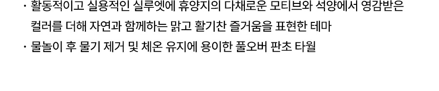 미끄럼틀과 같은 물놀이 기구의 경우, 마찰에 의해 옷감이 상하거나 보풀이 생길 수 있으니 주의해주시기 바랍니다.
