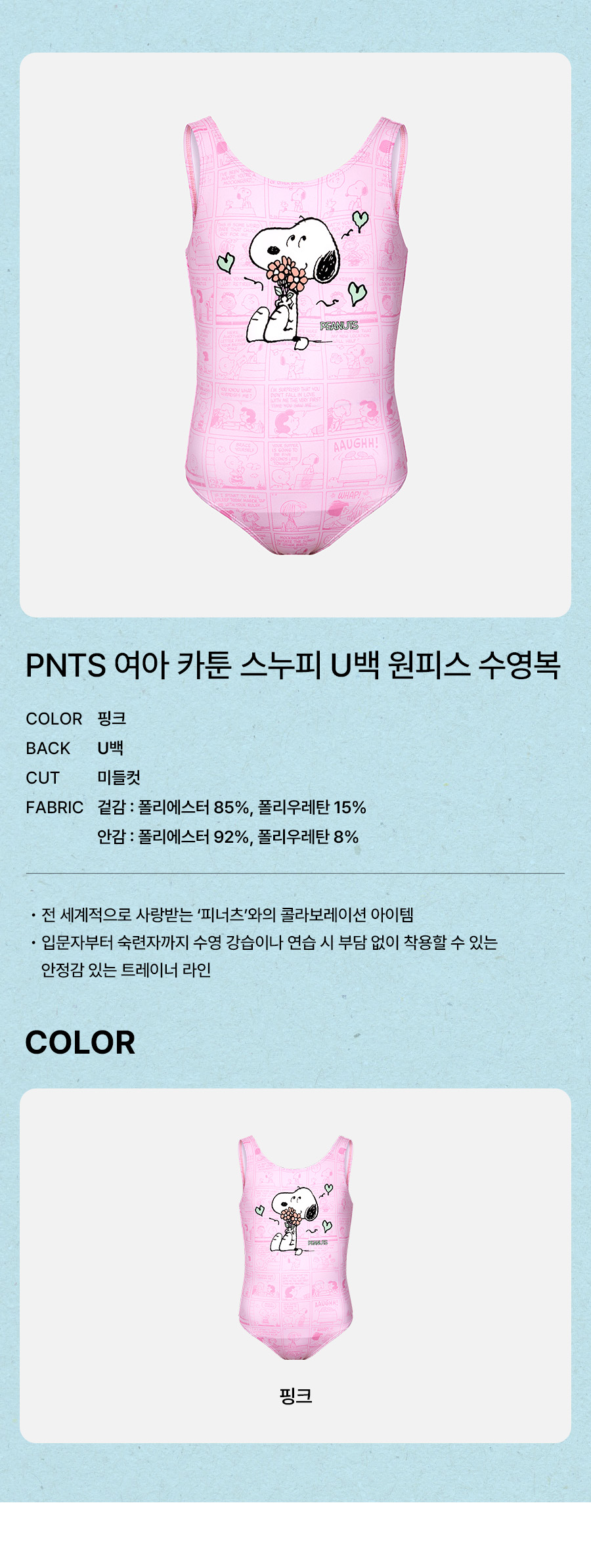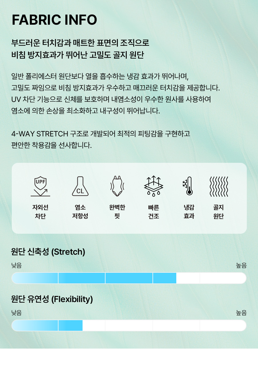 겉감: 폴리에스터 85%, 폴리우레탄 15% / 안감: 폴리에스터 92%, 폴리우레탄 8%
