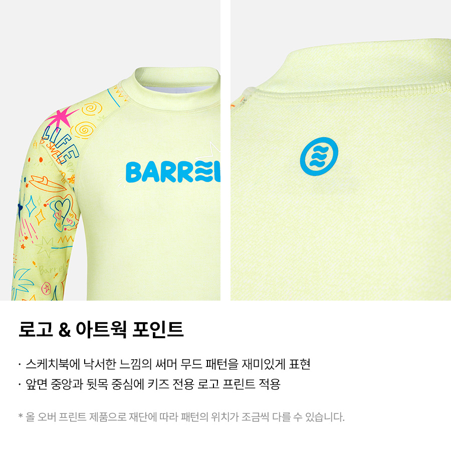 밝은 색상의 래쉬가드는 흙탕물에 오염이 되었을 경우 변색이 발생할 수 있으므로 주의 바랍니다.