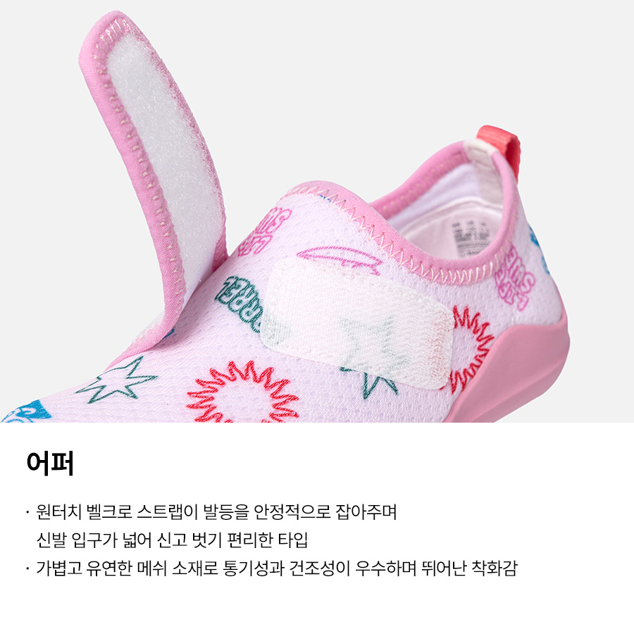겉감1: 폴리에스터 100% / 겉감2: 폴리에스터 85%, 폴리우레탄 15% / 안감1: 폴리에스터 100% / 안감2: 인조가죽 100% / 아웃솔: 합성고무 100%