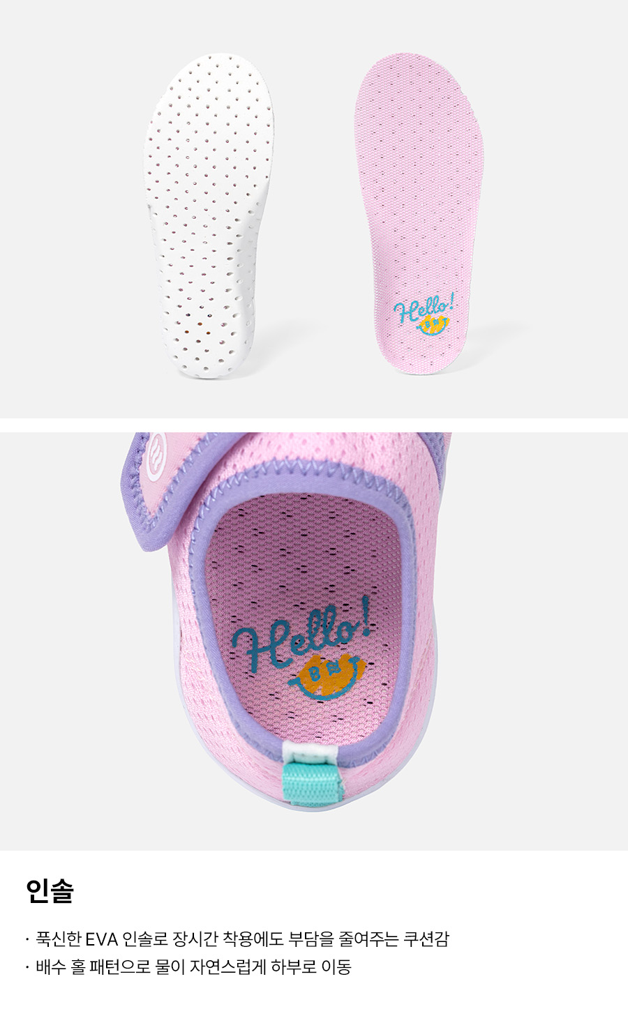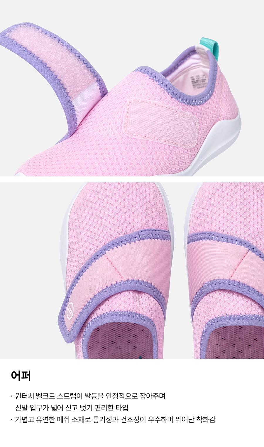 겉감1: 폴리에스터 100% / 겉감2: 폴리에스터 85%, 폴리우레탄 15% / 안감1: 폴리에스터 100% / 안감2: 인조가죽 100% / 아웃솔: 합성고무 100%