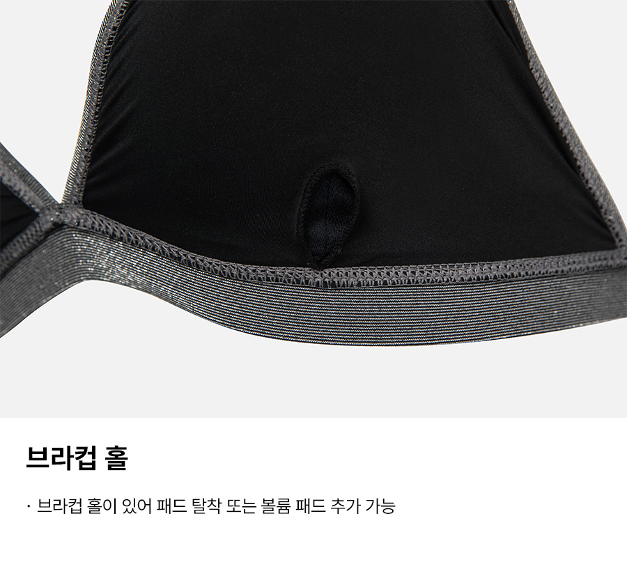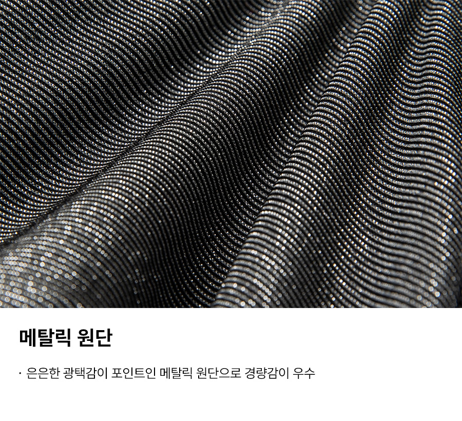 겉감: 폴리에스터 54%, 메탈릭 36%, 폴리우레탄 10% / 안감: 폴리에스터 73%, 폴리우레탄 27% / 패드 안감: 폴리에스터 91%, 폴리우레탄 9%