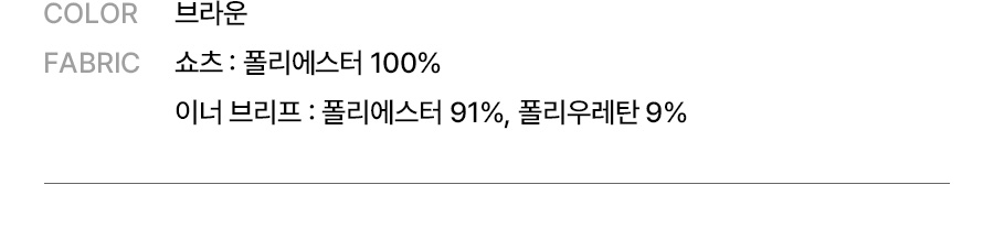 쇼츠 : 폴리에스터 100% / 이너 브리프 : 폴리에스터 91%, 폴리우레탄 9%