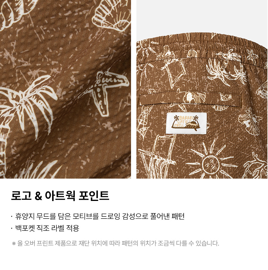 제품을 입고 바닷가나 수영장을 다녀오신 경우, 물 속의 화학성분 및 염분으로 인해 변색이 발생합니다. 땀으로 인한 부분 탈색이 발생할 수 있으니 가능한 한 빨리 수돗물로 세탁하시고 가볍게 두드려서 수분을 뺀 뒤, 직사광선을 피해 그늘에서 건조해주세요.