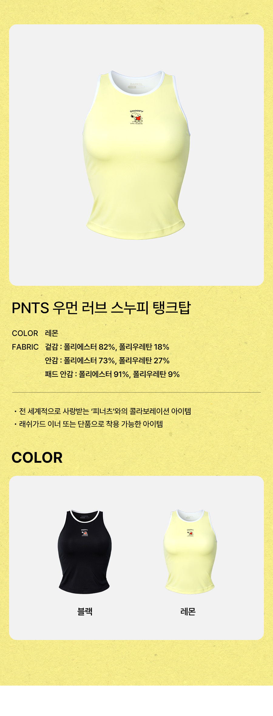 겉감: 폴리에스터 82%, 폴리우레탄 18% / 안감: 폴리에스터 73%, 폴리우레탄 27% / 패드 안감: 폴리에스터 91%, 폴리우레탄 9%