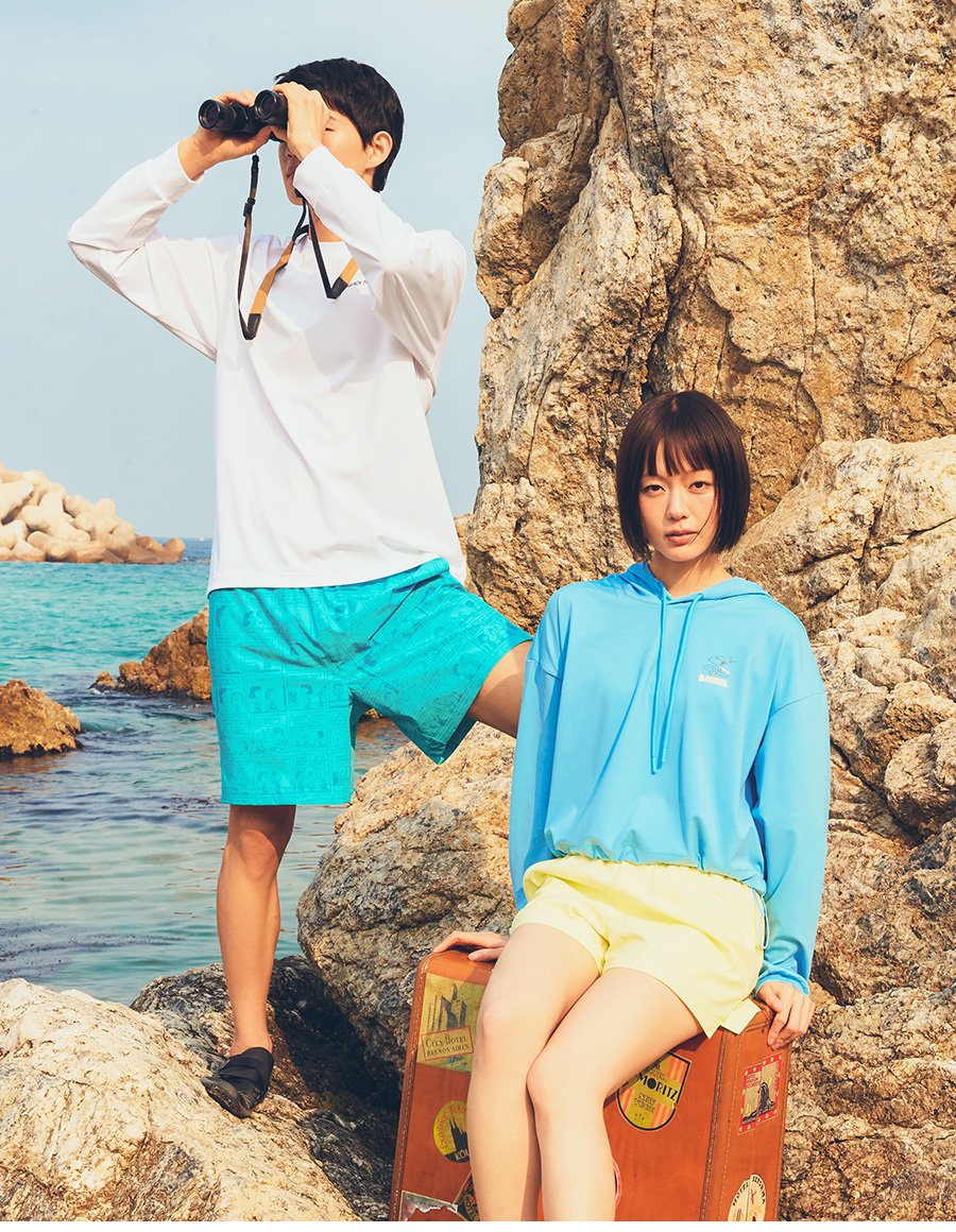 제품을 입고 바닷가나 수영장을 다녀오신 경우, 물 속의 화학성분 및 염분으로 인해 변색이 발생합니다. 땀으로 인한 부분 탈색이 발생할 수 있으니 가능한 한 빨리 수돗물로 세탁하시고 가볍게 두드려서 수분을 뺀 뒤, 직사광선을 피해 그늘에서 건조해주세요.