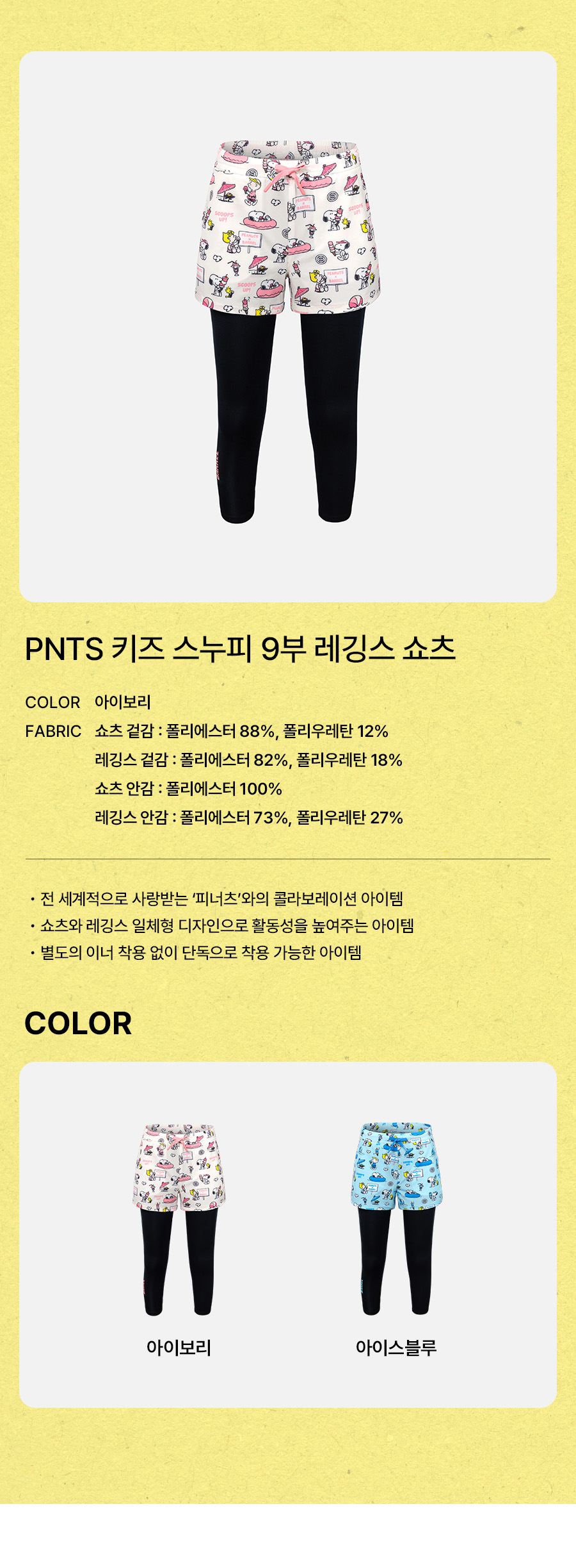 쇼츠 겉감: 폴리에스터 88%, 폴리우레탄 12% / 레깅스 겉감: 폴리에스터 82%, 폴리우레탄 18% / 쇼츠 안감: 폴리에스터 100% / 레깅스 안감: 폴리에스터 73%, 폴리우레탄 27%